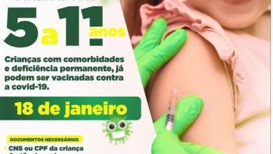 NESTA TERÇA – Barra de Santo Antônio inicia vacinação contra covid-19 em crianças de 5 a 11 anos