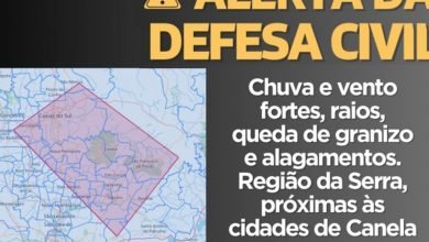 BRASIL – Defesa Civil emite alertas para diversas regiões do RS devido a previsão de chuvas e ventos fortes com descargas elétricas