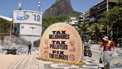 BRASIL – Ativistas instalam moeda gigante no Rio de Janeiro para pressionar G20 a taxar super-ricos e combater a crise climática.