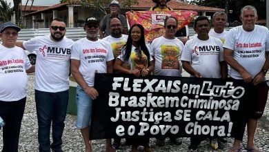 BRASIL – Moradores de Maceió protestam durante reunião do G20 por reparação ambiental após afundamento do solo causado pela Braskem.