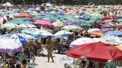 BRASIL – Alta temperatura e sol forte levam multidão às praias do Rio de Janeiro neste sábado; previsão de pancadas de chuva à tarde.