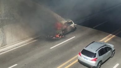 Carro pega fogo no viaduto do Jacintinho em Maceió, causando grande susto entre os motoristas e transeuntes.