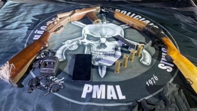 Polícia Militar apreende duas espingardas calibre 12 em abordagem em Rio Largo nesta terça-feira.