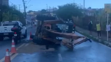 Trator tomba na Avenida Muniz Falcão, em Maceió, e causa lentidão no trânsito nesta manhã