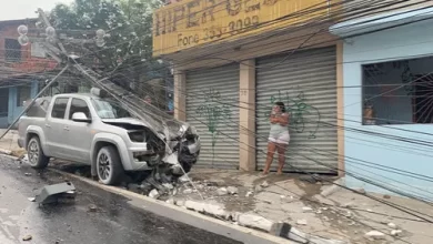 Caminhonete colide em poste e derruba transformador na Leste-Oeste, causando transtornos no trânsito e falta de energia.