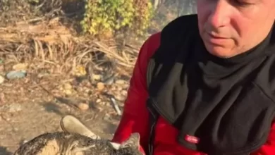 Gato é resgatado pelos bombeiros em incêndio em vegetação em São Miguel dos Milagres, Litoral Norte de Alagoas