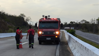 ALAGOAS – Corpo de Bombeiros combate incêndio em caminhão baú na BR-101, causando perda total do veículo