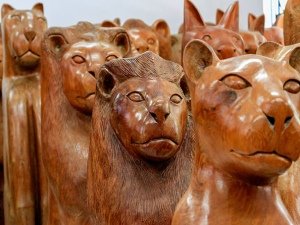 Exposição traz esculturas de animais feitas em troncos de madeira