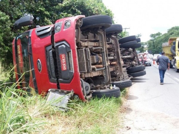 Caminhão que transportava óleo tomba e carga é saqueada em Satuba