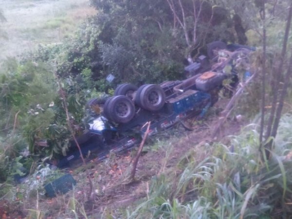 Homem morre após caminhão capotar e cair em ribanceira na BR-101