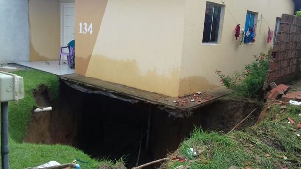 Chuva abre cratera em casa de condomínio residencial