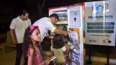 Marcelo Palmeira entrega primeira geladeira cheia de livros na cidade