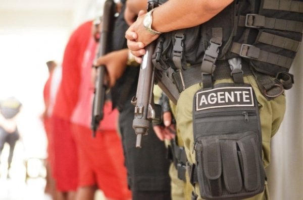 Agentes penitenciários fazem varredura no Presídio Baldomero Cavalcanti