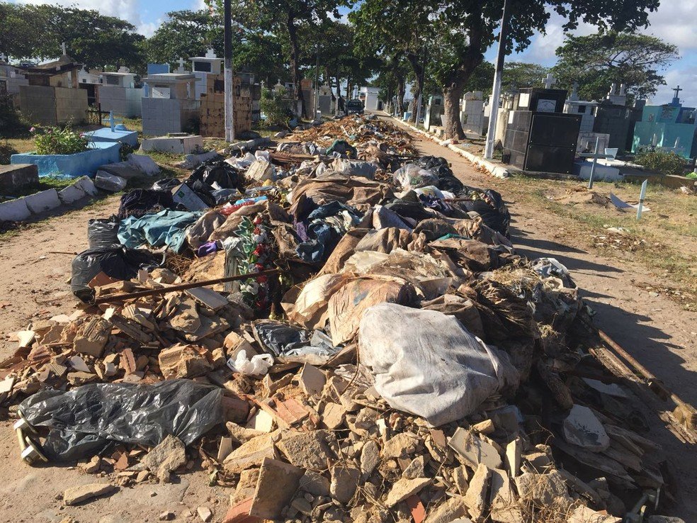 Lixo e ossos expostos em mais um cemitério da capital