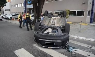 Após colisão, veículo capota e grávida fica ferida