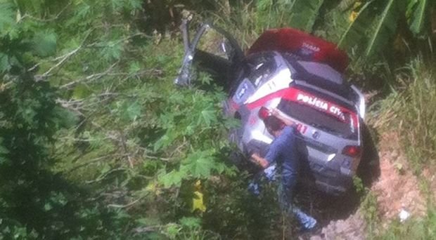 Viatura da Polícia cai em ribanceira após acidente com mais dois veículos