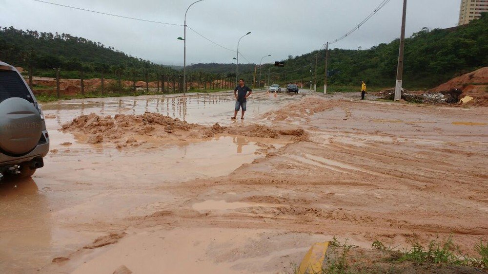 Deslizamento de terra bloqueia trecho da Av. Pierre Chalita em Maceió