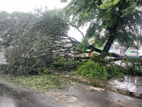Árvore cai e bloqueia parte de rua no bairro do Poço
