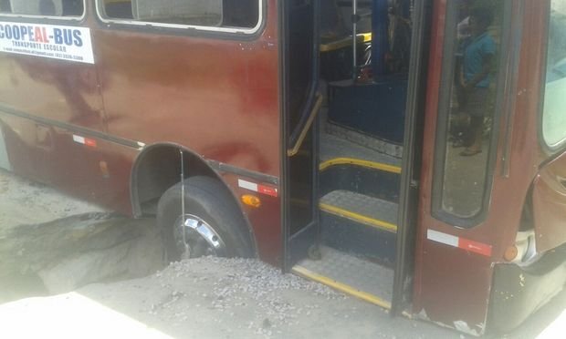 Ônibus de transporte escolar cai em buraco após asfalto ceder no Cambuci